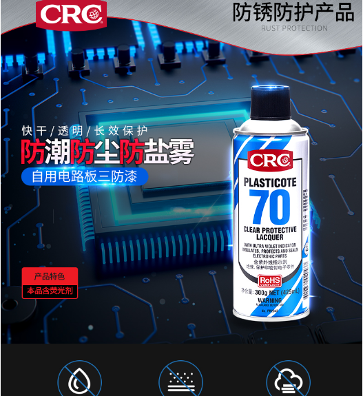 3.CRC PLASTICOTE70線(xiàn)路板透明保護(hù)三防劑特點(diǎn):