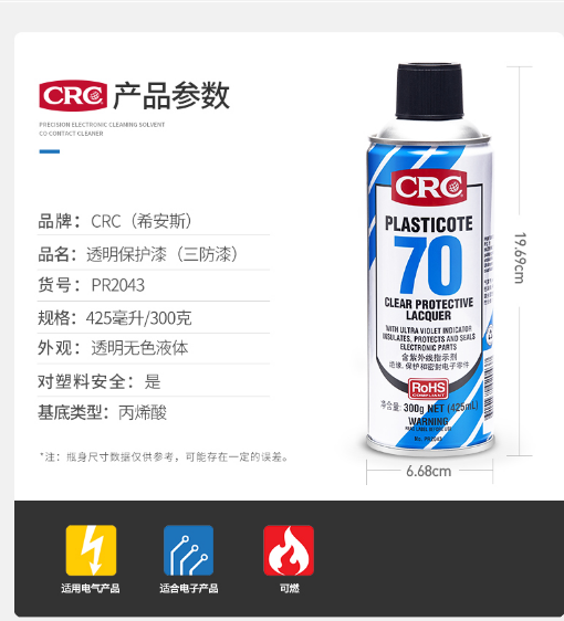 1. CRC PLASTICOTE70線(xiàn)路板透明保護(hù)三防劑產(chǎn)品介紹: