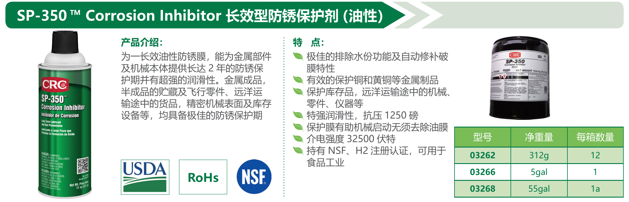 SP 350TM 美國(guó)CRC 03262/66/68 長(zhǎng)效型防銹保護(hù)劑(油性)