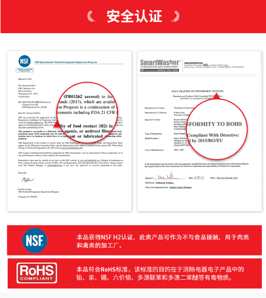 持有NSF 、H2 注冊(cè)認(rèn)證,可用于食品工業(yè)